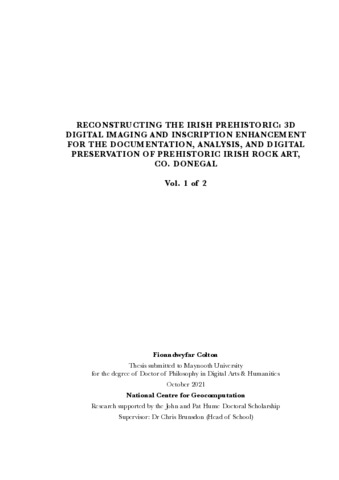 Colton, Fionndwyfar (2021) Reconstructing The Irish Prehistoric: 3D Digital Imaging And Inscription Enhancement For The Documentation, Analysis, And Digital Preservation Of Prehistoric Irish Rock Art, Co. Donegal. PhD thesis, National University of Ireland Maynooth.