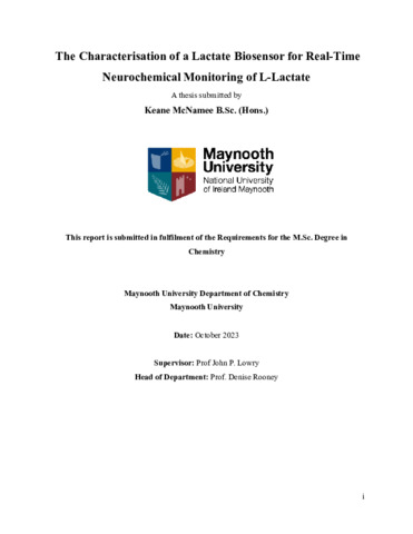McNamee, Keane (2023) The Characterisation of a Lactate Biosensor for Real-Time Neurochemical Monitoring of L-Lactate. Masters thesis, National University of Ireland Maynooth.