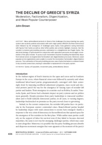 Brown, John (2025) The Decline of Greece’s Syriza: Moderation, Factionalism, Oligarchization, and Weak Popular Counterpower. New Political Science, 47 (3). pp. 436-463. ISSN 0739-3148