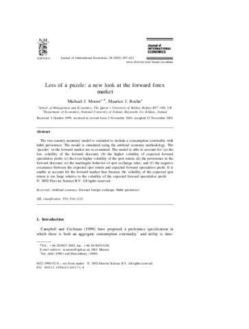 Moore, Michael J. and Roche, Maurice J. (2002) Less of a puzzle: a new look at the forward forex market. Journal of International Economics, 58 (2). pp. 387-411. ISSN 0022-1996