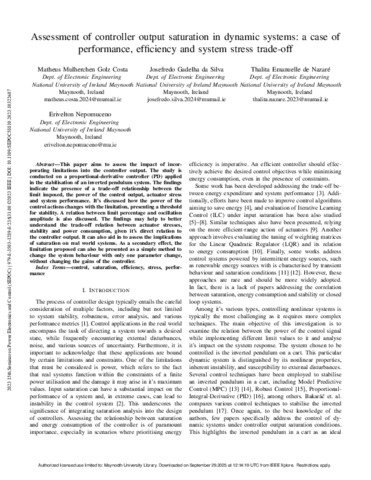 Costa, Matheus Mulherchen Golz, Da Silva, Josefredo Gadelha, De Nazaré, Thalita Emanuelle and Nepomuceno, Erivelton (2023) Assessment of controller output saturation in dynamic systems: a case of performance, efficiency and system stress trade-off. 2023 15th Seminar on Power Electronics and Control (SEPOC). pp. 1-6.