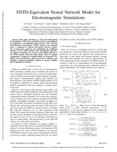 Cheng, Yu, Huang, Siyi, Zhang, Xinyue, Yang, Shunchuan and Zhang, Xingqi (2024) FDTD-Equivalent Neural Network Model for Electromagnetic Simulations. 2024 IEEE International Symposium on Antennas and Propagation and INC/USNC‐URSI Radio Science Meeting (AP-S/INC-USNC-URSI). pp. 2585-2586. ISSN 1947-1491