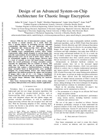 Lima, Arthur M., Nardo, Lucas G., Nepomuceno, Erivelton, Arias-Garcia, Janier and Yudi, Jones (2023) Design of an Advanced System-on-Chip Architecture for Chaotic Image Encryption. 2023 36th SBC/SBMicro/IEEE/ACM Symposium on Integrated Circuits and Systems Design (SBCCI). pp. 1-6.