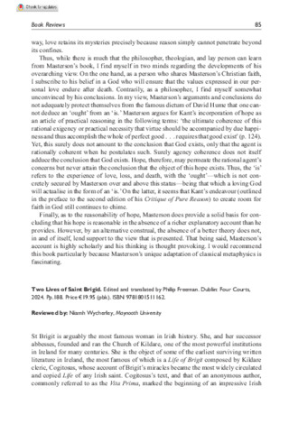 Wycherley, Niamh (2025) Book Review: Two Lives of Saint Brigid. Irish Theological Quarterly, 90 (1). pp. 85-87. ISSN 0021-1400