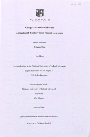 Hunt, Una (2006) George Alexander Osborne: A Nineteenth-Century Irish Pianist-Composer. PhD thesis, National University of Ireland Maynooth.
