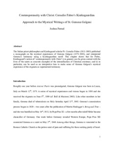 The Italian priest-philosopher and Kierkegaard scholar Fr. Cornelio Fabro (1911–1995) published a monograph on the mystical experiences of Gemma Galgani (1878–1903), and interpreted Gemma’s testimony using a Kierkegaardian motif. This chapter shows that for Fabro, Kierkegaard’s notion of “contemporaneity with Christ” (i) in general, can be given content with the lives of the saints as concrete examples of the intensification of Christian existence; and (ii) in particular, can be used as an interpretive lens to make sense of Gemma Galgani’s mystical experience of the stigmata as supernatural testimony.