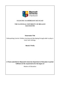 O'Reilly, Nicola (2019) Relinquishing Control: Children learning and developing through adult co-play in Early Years Settings. Masters thesis, National University of Ireland Maynooth.