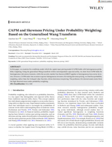 Int J Fin Econ - 2025 - Sun - CAPM and Skewness Pricing Under Probability Weighting Based on the Generalised Wang.pdf