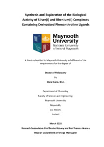 Evans, Clara (2025) Synthesis and Exploration of the Biological Activity of Silver(I) and Rhenium(I) Complexes Containing Derivatised Phenanthroline Ligands. PhD thesis, National University of Ireland Maynooth.