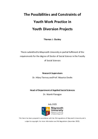 Cluskey, Thomas J. (2025) The Possibilities and Constraints of Youth Work Practice in Youth Diversion Projects. PhD thesis, National University of Ireland Maynooth.