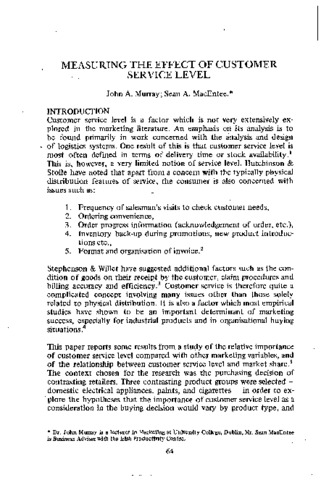 Murray, John A. and MacEntee, Sean A. (1979) Measuring the Effect of Customer Service Level. Irish Business and Administration Research, 1 (1): 5. pp. 64-72. ISSN 0332-1118