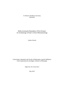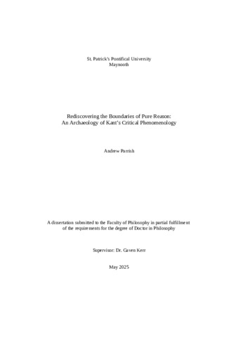 Parrish, Andrew (2025) Rediscovering the Boundaries of Pure Reason: An Archaeology of Kant’s Critical Phenomenology. PhD thesis, St. Patrick’s Pontifical University Maynooth Ireland.