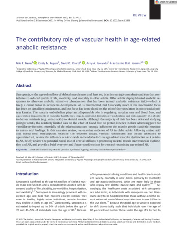 Banks, Nile, Rogers, Emily M., Church, David D., Ferrando, Arny A. and Jenkins, Nathaniel D.M. (2022) The contributory role of vascular health in age‐related anabolic resistance. Journal of Cachexia, Sarcopenia and Muscle, 13 (1). pp. 114-127. ISSN 2190-5991