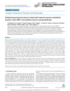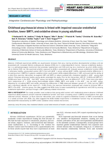 Jenkins, Nathaniel D. M., Rogers, Emily M., Banks, Nile, Tomko, Patrick M., Sciarrillo, Christina M., Emerson, Sam R., Taylor, Ashlee and Teague, T. Kent (2021) Childhood psychosocial stress is linked with impaired vascular endothelial function, lower SIRT1, and oxidative stress in young adulthood. American Journal of Physiology-Heart and Circulatory Physiology, 321 (3). H532-H541. ISSN 0363-6135