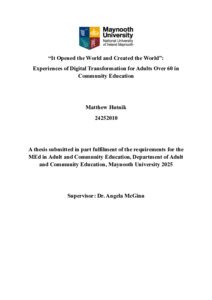 Hutnik, Matthew (2025) “It Opened the World and Created the World”: Experiences of Digital Transformation for Adults Over 60 in Community Education. Masters thesis, National University of Ireland Maynooth.