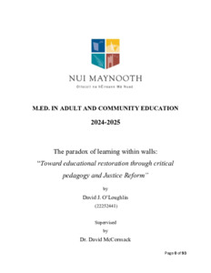 O'Loughiln, David (2025) The paradox of learning within walls: “Toward educational restoration through critical pedagogy and Justice Reform”. Masters thesis, National University of Ireland Maynooth.