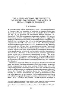 Golding, G. M. (1981) The Application of Preventative Measures to Failing Companies: Is Legal Control Possible? Irish Business and Administration Research, 3 (2): 3. pp. 25-28. ISSN 0332-1118