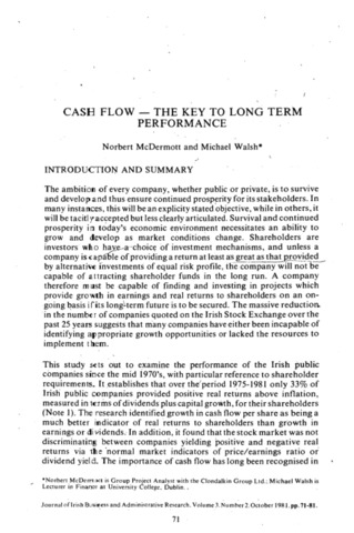 McDermott, Norbert and Walsh, Michael (1981) Cash Flow - The Key to Long Term Performance. Irish Business and Administration Research, 3 (2): 7. pp. 71-81. ISSN 0332-1118