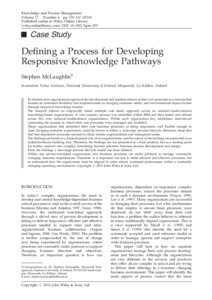 McLaughlin, Stephen (2010) Defining a process for developing responsive knowledge pathways. Knowledge and Process Management, 17 (4). pp. 155-167. ISSN 1092-4604
