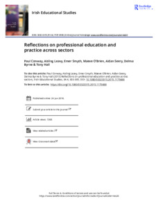 Conway, Paul, Leavy, Aisling, Smyth, Emer, O’Brien, Maeve, Seery, Aidan, Byrne, Delma and Hall, Tony (2015) Reflections on professional education and practice across sectors. Irish Educational Studies, 34 (4). pp. 303-305. ISSN 0332-3315