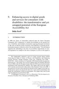 Ferri, Delia (2025) Enhancing access to digital goods and services for consumers with disabilities: the transformative and yet untapped potential of the European Accessibility Act. In: Empirics and Consumer Law in Changing Markets. Edward Elgar Publishing, pp. 159-175. ISBN 978 1 03532 708 9
