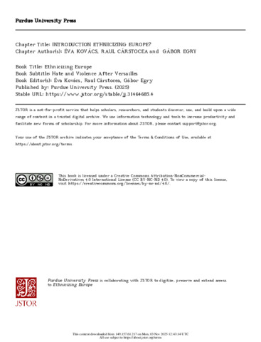 Kovacs, Eva, Carstocea, Raul and Egry, Gabor (2025) Introduction: Ethnicizing Europe? In: Ethnicizing Europe: Hate and Violence after Versailles. Purdue University Press, West Lafayette, IN, pp. 1-39.