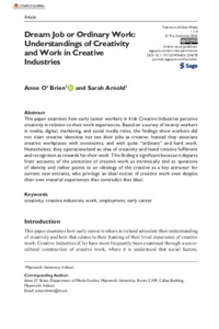 O'Brien, Anne (2025) Dream Job or Ordinary Work: Understandings of Creativity and Work in Creative Industries. Television and New Media. pp. 1-16. ISSN 1527-4764