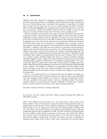 Hanley, Brian (2005) Book Review: Peter Hart. The IRA at War, 1916–1923. Oxford: Oxford University Press, 2003. Journal of British Studies, 44 (4). pp. 904-906. ISSN 0021-9371