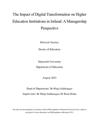 Hanley, Michael (2025) The Impact of Digital Transformation on Higher Education Institutions in Ireland: A Managership Perspective. PhD thesis, National University of Ireland Maynooth.