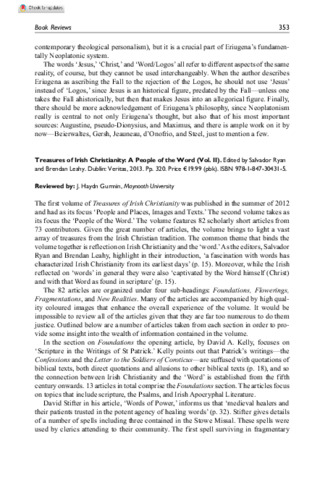 Gurmin, J. Haydn (2015) Book Review: Treasures of Irish Christianity: A People of the Word (Vol. II). Edited by Salvador Ryan and Brendan Leahy. Dublin: Veritas, 2013. ISBN 978-1-847-30431-5. Irish Theological Quarterly, 80 (4). pp. 353-356. ISSN 0021-1400