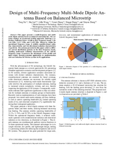 Xu, Tong, Lin, Shu, Wang, LiBo, Zhang, Yuwei, Zhang, Xingqi and Zhang, Xinyue (2024) Design of Multi-Frequency Multi-Mode Dipole Antenna Based on Balanced Microstrip. 2024 International Conference on Microwave and Millimeter Wave Technology (ICMMT). pp. 1-3.