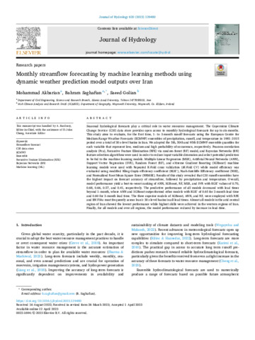 Akbarian, Mohammad, Saghafian, Bahram and Golian, Saeed (2023) Monthly streamflow forecasting by machine learning methods using dynamic weather prediction model outputs over Iran. Journal of Hydrology, 620 B (129480). pp. 1-23. ISSN 0022-1694