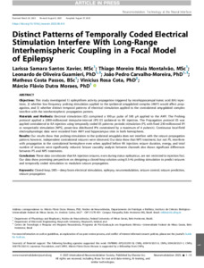 Santos Xavier, Larissa Samara, Maia Montalvão, Thiago Moreira, de Oliveira Guarnieri, Leonardo, Carvalho-Moreira, João Pedro, Passos, Matheus Costa, Cota, Vinícius Rosa and Moraes, Márcio Flávio Dutra (2025) Distinct Patterns of Temporally Coded Electrical Stimulation Interfere With Long-Range Interhemispheric Coupling in a Focal Model of Epilepsy. Neuromodulation: Technology at the Neural Interface. ISSN 1094-7159