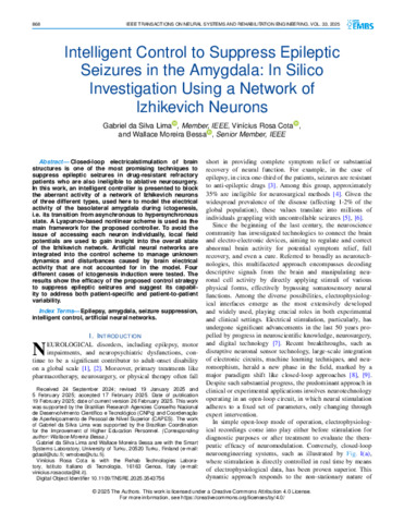 da Silva Lima, Gabriel, Rosa Cota, Vinícius and Bessa, Wallace Moreira (2025) Intelligent Control to Suppress Epileptic Seizures in the Amygdala: In Silico Investigation Using a Network of Izhikevich Neurons. IEEE Transactions on Neural Systems and Rehabilitation Engineering, 33. pp. 868-880. ISSN 1534-4320