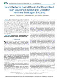 | Keywords: | Adaptive control; generalized Nash equilibrium (GNE); multiagent systems; neural network (NN); |