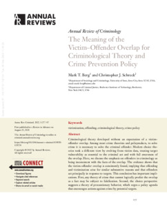 Schreck, Christopher (2022) The meaning of the victim-offender overlap for criminological theory and crime prevention policy. Annual Review of Criminology, 5. pp. 277-297. ISSN 2572-4568
