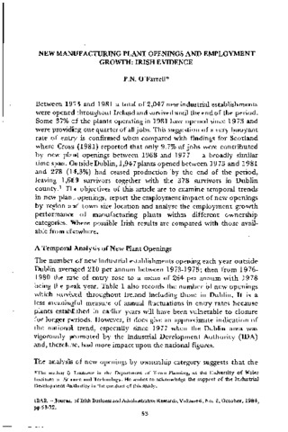 O'Farrell, P.N. (1984) New Manufacturing Plant Openings and Employment Growth: Irish Evidence. Irish Business and Administration Research, 6 (2): 5. pp. 53-72. ISSN 0332-1118