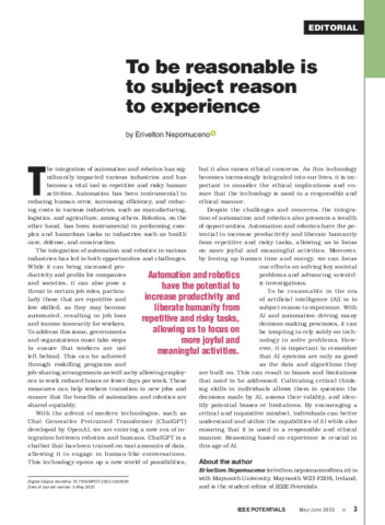 Nepomuceno, Erivelton (2023) To be reasonable is to subject reason to experience [Editorial]. IEEE Potentials, 42 (3). p. 3. ISSN 0278-6648