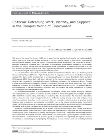 Crowley-Henry, Marian (2025) Editorial: Reframing Work, Identity, and Support in the Complex World of Employment. Irish Journal of Management, 44 (1): 1. pp. 1-2. ISSN 1649-248X