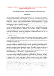 Therefore, this chapter has two aims. Firstly, it examines the codicology of the book to establish the original structure and sequence of quires and place the texts in their original order. Secondly, it examines the use of filler-texts, many of which have been overlooked by scholarship, together with their textual history, and assesses their purpose in the codex. It is argued that such filler-texts were not only intentionally selected for their content, but also hold a particular function for the cohesion of the book.