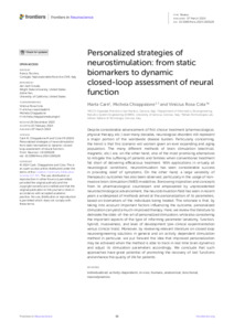 Carè, Marta, Chiappalone, Michela and Cota, Vinícius Rosa (2024) Personalized strategies of neurostimulation: from static biomarkers to dynamic closed-loop assessment of neural function. Frontiers in Neuroscience, 18. pp. 1-14. ISSN 1662-453X
