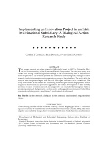 Costello, Gabriel J., Donnellan, Brian and Conboy, Kieran (2014) Implementing an Innovation Project in an Irish Multinational Subsidiary: A Dialogical Action Research Study. Irish Journal of Management, 33 (1): 6. pp. 73-89. ISSN 1649-248X