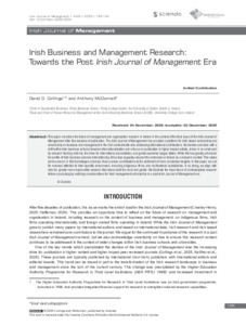 | Keywords: | Irish Business and Management Research; Post Irish Journal of Management Era; Irish journal of management; |