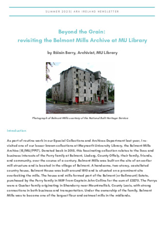 Berry, Róisín (2025) Beyond the Grain: revisiting the Belmont Mills Archive at MU Library. ARA Ireland Newsletter.