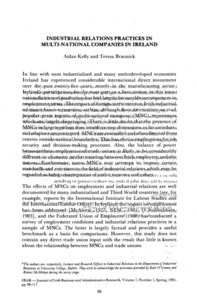 Kelly, Aidan and Brannick, Teresa (1985) Industrial Relations Practices in Multi-National Companies in Ireland. Irish Business and Administration Research, 7 (1): 8. pp. 98-112. ISSN 0332-1118