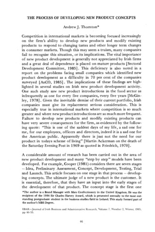 Thornton, Andrew J. (1985) The Process of Developing New Product Concepts. Irish Business and Administration Research, 7 (2): 5. pp. 46-55. ISSN 0332-1118