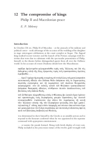 Moloney, Eoghan (2017) The compromise of kings: Philip II and Macedonian peace. In: Peace and Reconciliation in the Classical World. 1st ed. Routledge, London & New York, pp. 178-194. ISBN 9780367595395