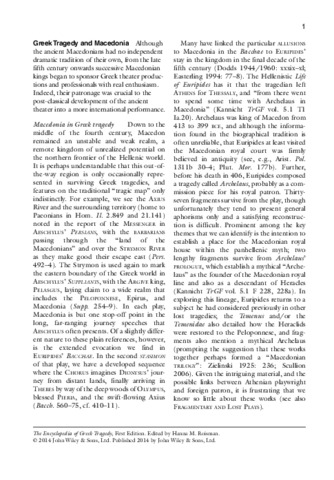 Moloney, Eoghan (2013) Greek Tragedy and Macedonia. In: Encyclopaedia of Greek Tragedy. Wiley-Blackwell, Malden, MA, pp. 602-614. ISBN 9781118351222