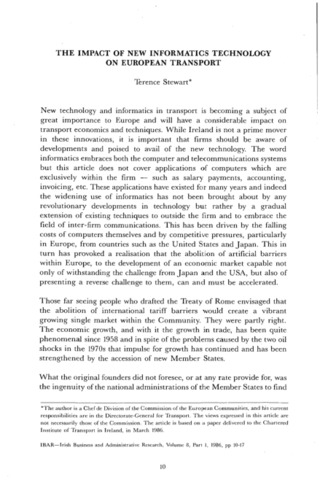 Stewart, Terence (1986) The Impact of New Informatics Technology on European Transport. Irish Business and Administration Research, 8 (1): 2. pp. 10-17. ISSN 0332-1118