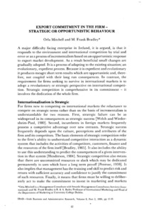 Mitchell, Orla and Bradley, Frank (1986) Export Commitment in the Firm:- Strategic or Opportunistic Behaviour. Irish Business and Administration Research, 8 (2): 2. pp. 12-19. ISSN 0332-1118